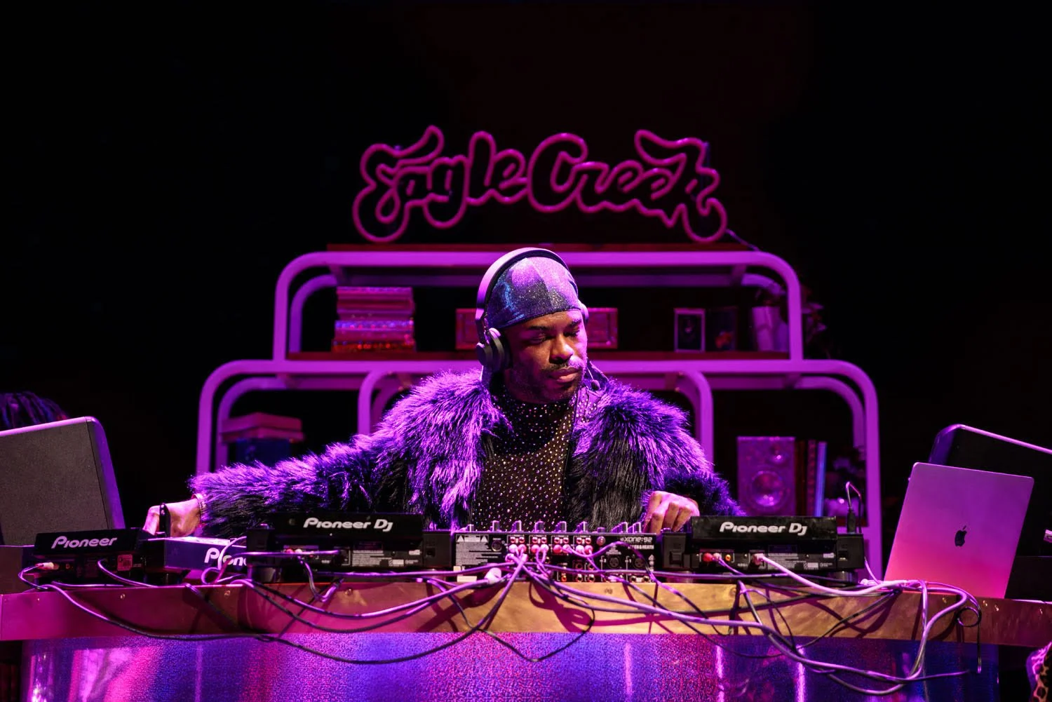 madison moore: there’s always room for dancing: Performance Lecture, as part of Nightlife-in-Residence, March 3, 2022. Performance view, The Kitchen, NYC. Within Sadie Barnette: The New Eagle Creek Saloon. Photo by Walter Wlodarczyk.